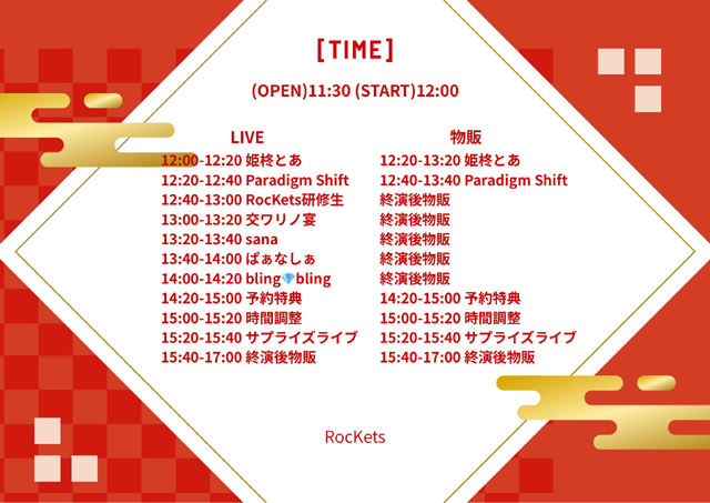 ・その他、不明な点は必ず当日その場にて運営・スタッフに確認ください。問題などが確認できましたら対応または返金などの対処をさせていただきます。イベント終了後のいかなるご質問、ご要望に対しては対応いたしかねますのであらかじめご承知ください