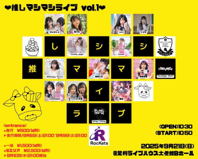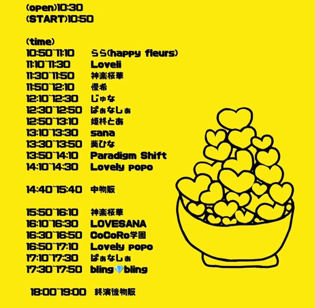 ※イベント実施当日または事前にメンバー及び関係者に体調不良者などが万が一出た場合、イベントの開催を中止あるいはメンバーの変更などを行う場合があります。