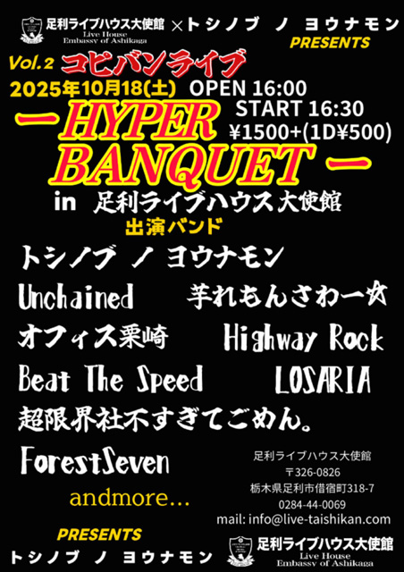 足利ライブハウス大使館 × トシノブ ノ ヨウナモン PRESENTS