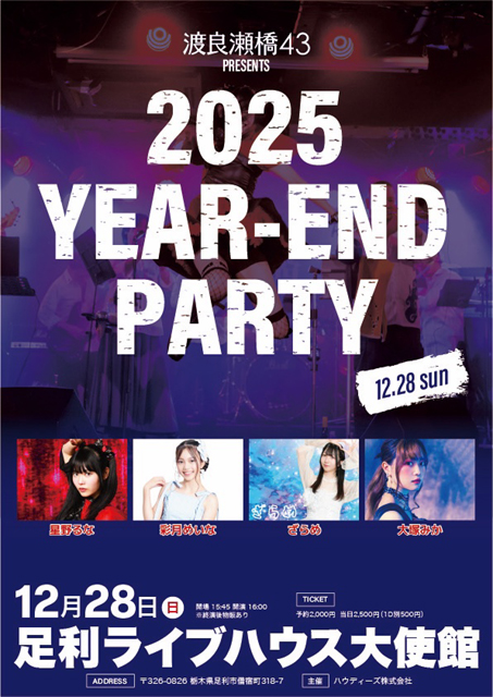 ※イベント実施当日または事前にメンバー及び関係者に体調不良者などが万が一出た場合、イベントの開催を中止あるいはメンバーの変更などを行う場合があります。その際のキャンセルにつきましてはお気軽にお申し付けください