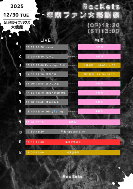 bling💎bling / ぱぁなしぁ / 姫柊とあ / じゅな / sana / Paradigm Shift / 交ワリノ宴 / RocKets研修生