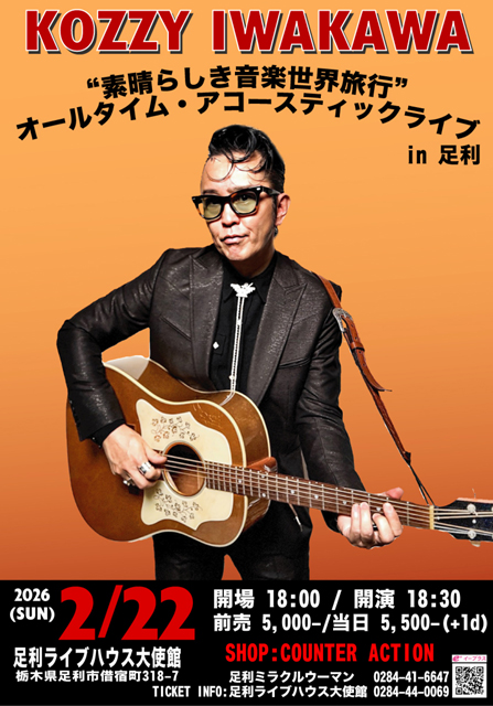 KOZZY IWAKAWA オールタイム・アコースティックライブ in 足利のチケット予約はコチラ